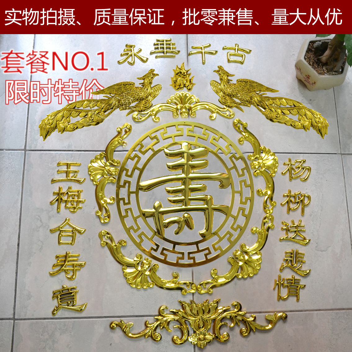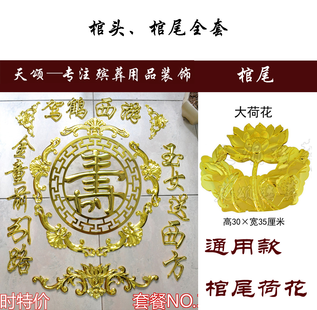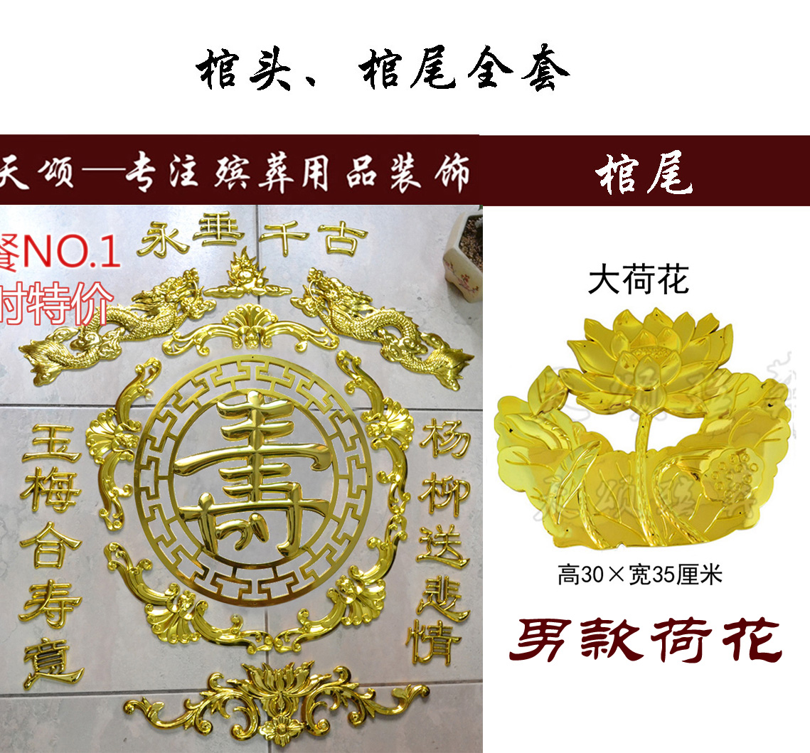 Coffin of the burial coffin of the wooden coffin plastic gold plastic funeral coffin decoration with decorative accessories