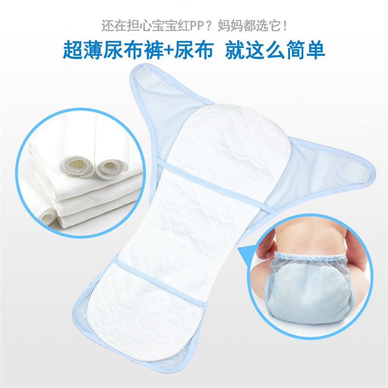 Pure cotton mesh diaper pants summer washable breathable seppurea anti-leak net cloth diaper pocket baby underwear diaper fixing pants