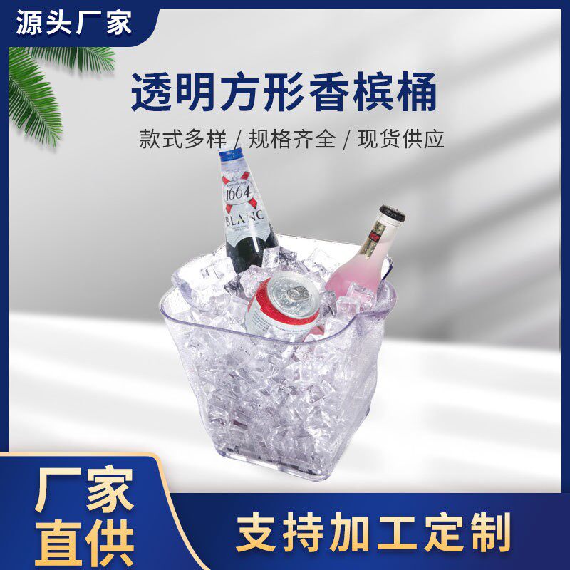 PS plastic 4L transparent round champagne drum square cocktail drum with round wave ice bucket printed LOGO