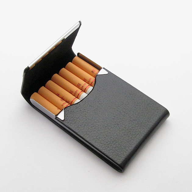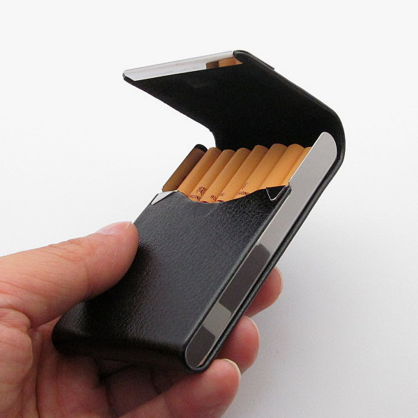 Ultra-thin men's smoking control cigarette case 7 personalized stainless steel cigarette case portable with 10 cigarette clips leather cigarette case