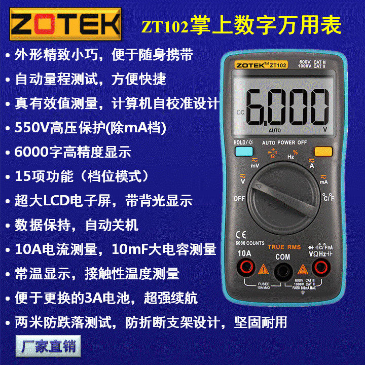 ZT102ZT102A Automatic range full protection true RMS digital universal meter Small meter capacitor