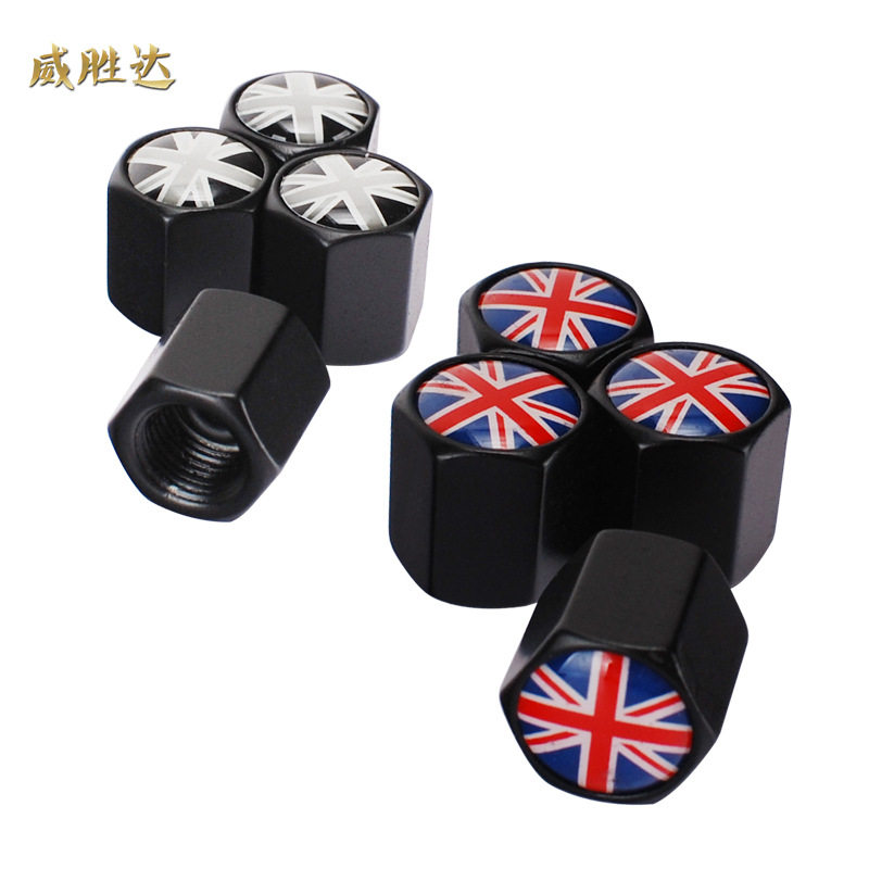Car Retrofit Tire Valve Nozzle Cap Leakproof British Flag Rice Wordflag Personality Retrofitted Valve Core Lid With Wrench