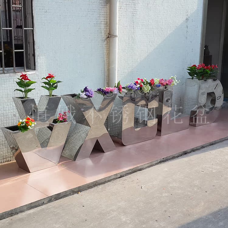 Factory custom stainless steel letter decoration flower pot creative metal ornaments