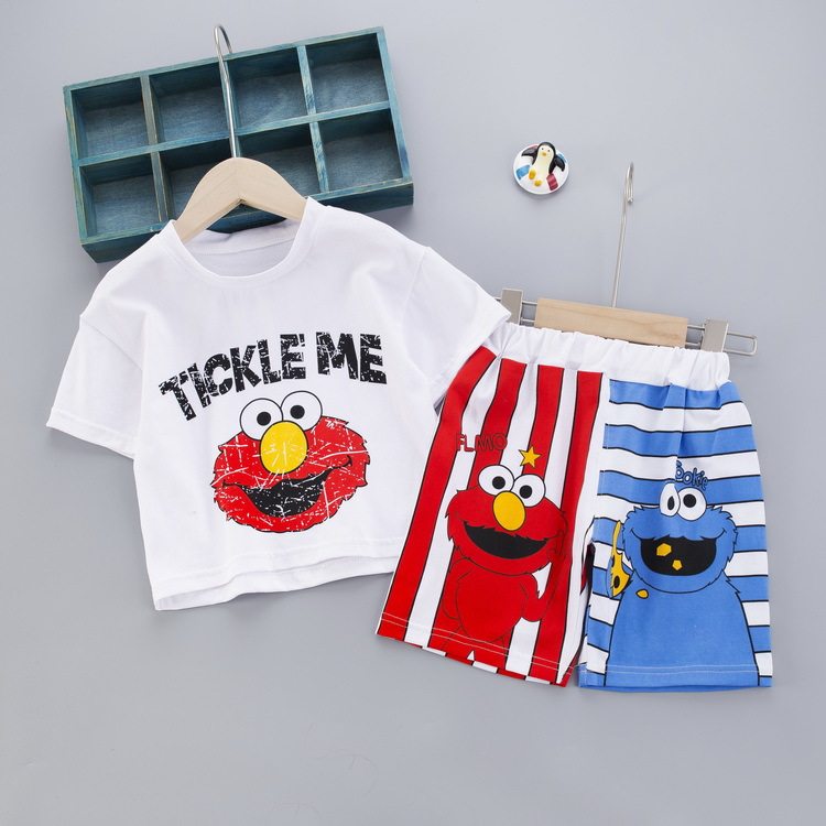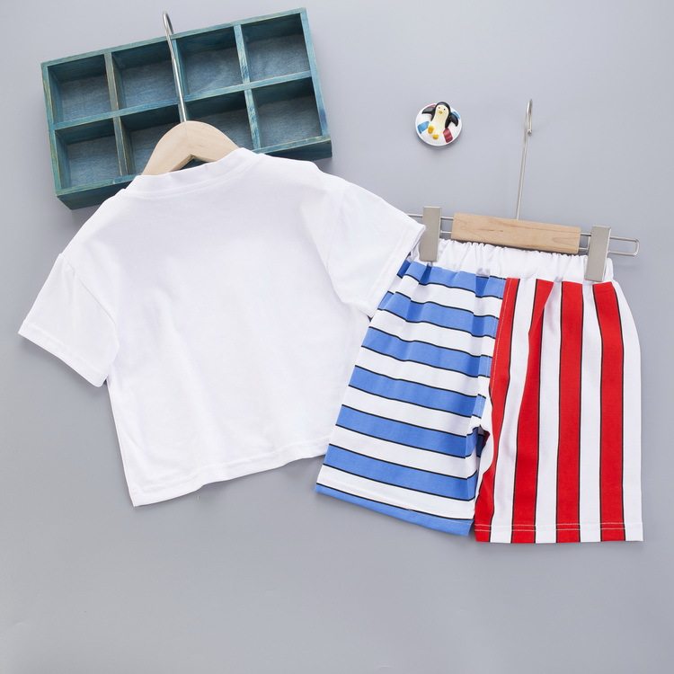Toddler summer clothing suit boys and girls T-shirt top shorts mandarin duck pants two-piece short-sleeved T-shirt stitching pants