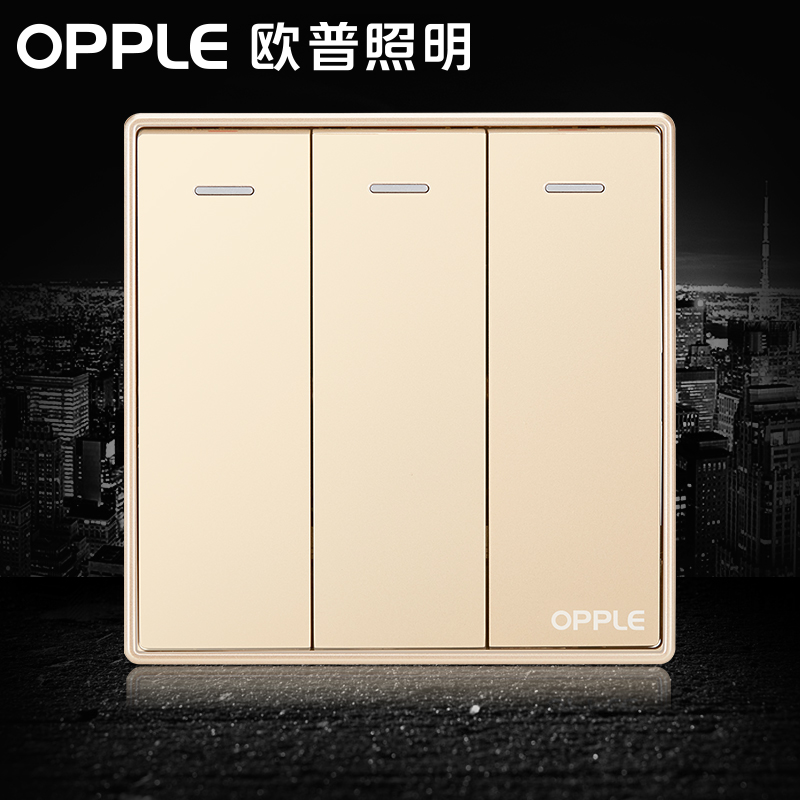 OPPLE lighting switch socket three open single control switch three position single control power supply wall 3 open three open panel gold G