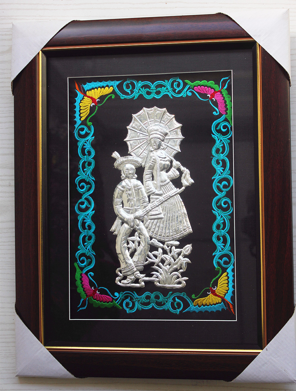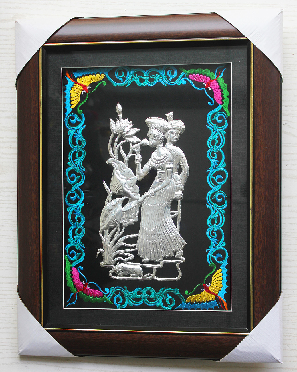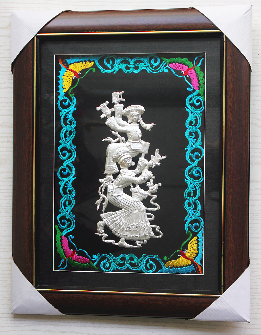Pure handmade pure silver silver painting Chinese style living room bedroom decoration hanging painting ethnic wind classical Lusheng Dancing silver decorated with decoration painting