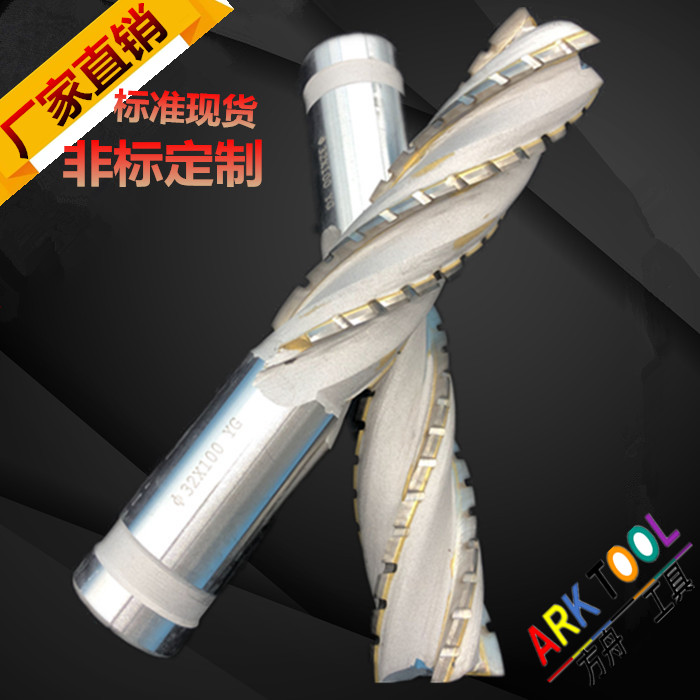 Inlaid carbide welded tungsten steel straight shank extended helical coarse-toothed end mill Recommended for rough machining