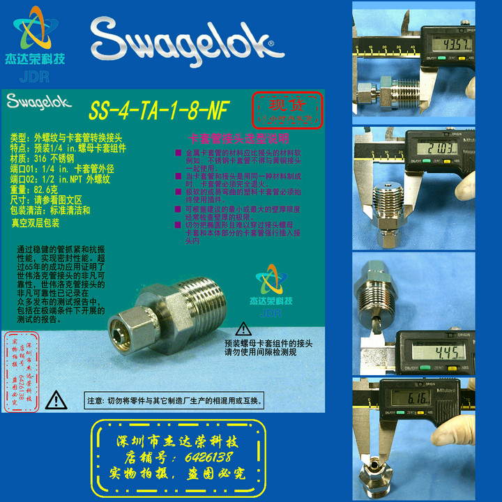 (SS-4-TA-1-8-NF) Swagelok Shiwei Rockepipe converting joint 1 4 in cutting sleeve
