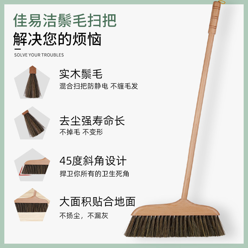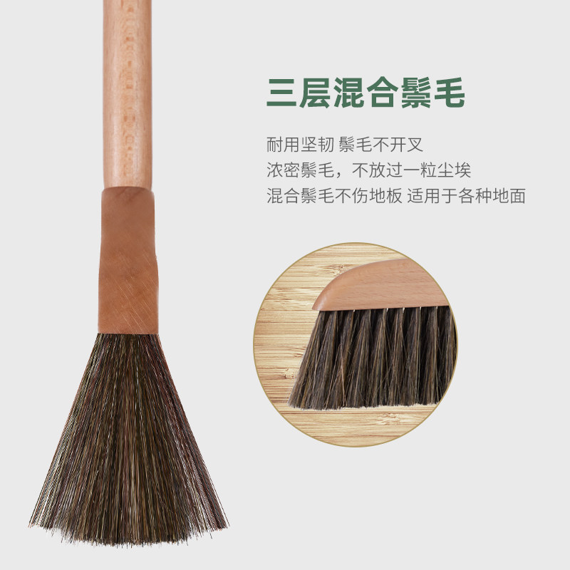 Mane broom dustpan set combination wood floor broom soft hair thickened household non-stick wool solid wood sweeping broom