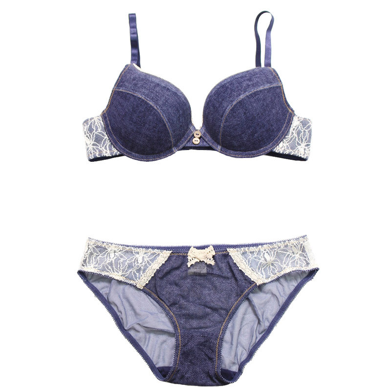 152 full 80 European and American denim web yarn hanging neck bra with thin lower and thick poly-woo female underwear detachable shoulder strap