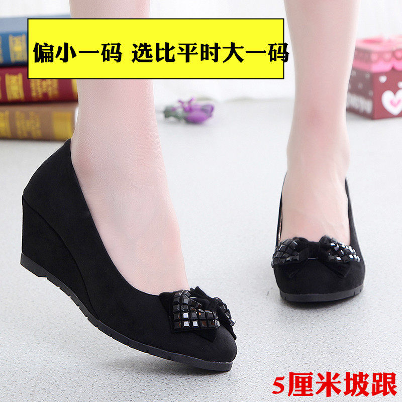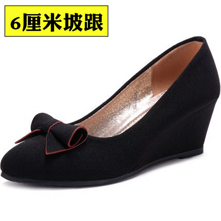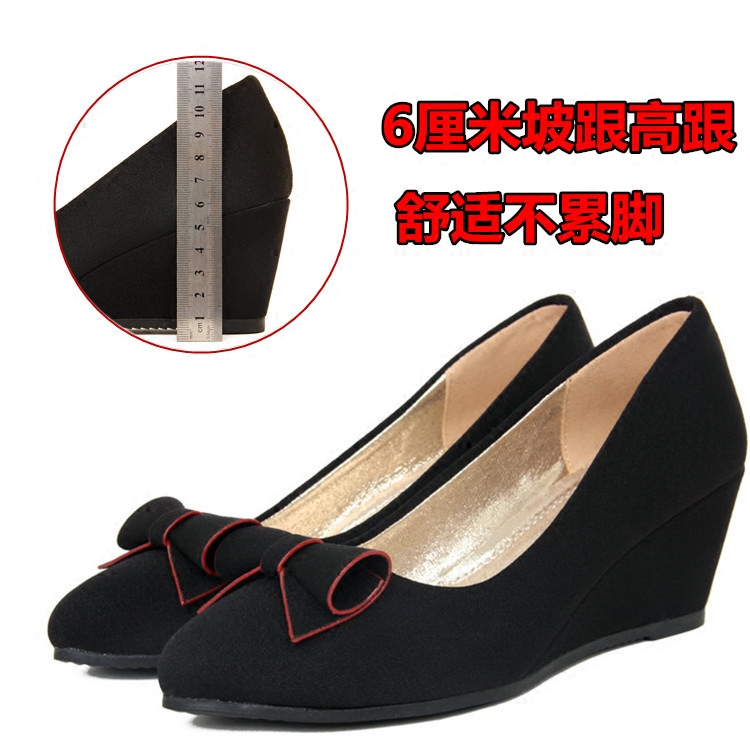 Old Beijing Cloth Shoes Breathable Woman Single Shoe Slope Heel Non-slip Working Shoes Butterfly Knot Pointed Shallow Oral Women Career Shoes