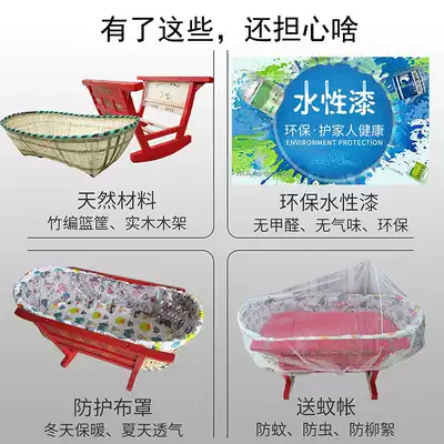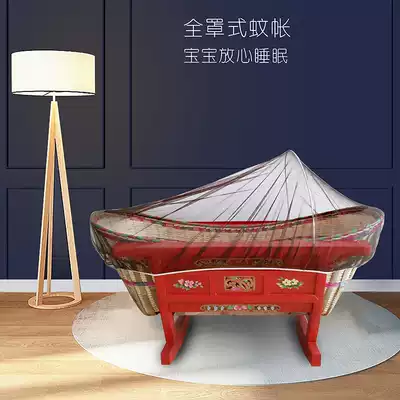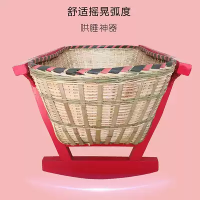 Old-fashioned baby bed rocking nest rural cradle bed Old solid wood rocking basket rocking basket Children's rocking bed with mosquito net bamboo sleeping basket