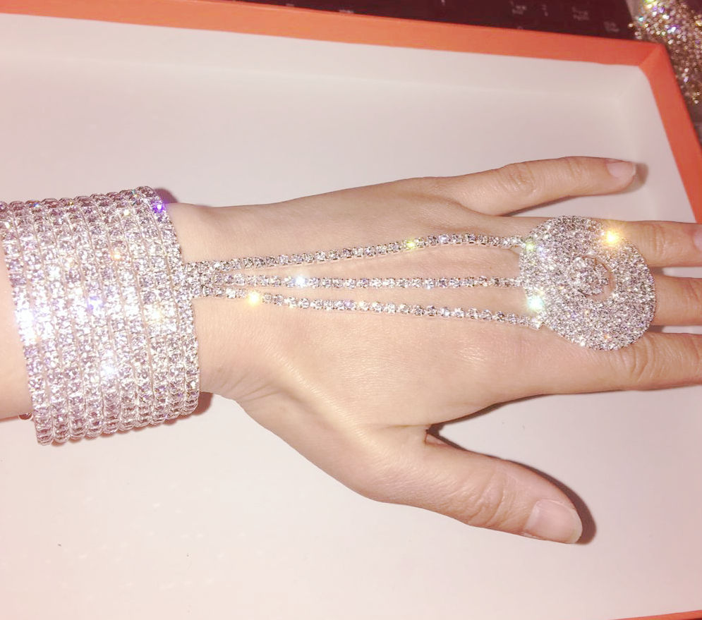 Exaggerated luxury flash diamond hand multi-row drill bodybuilding wedding jewelry dance hand accessories bracelet bracelet one hand