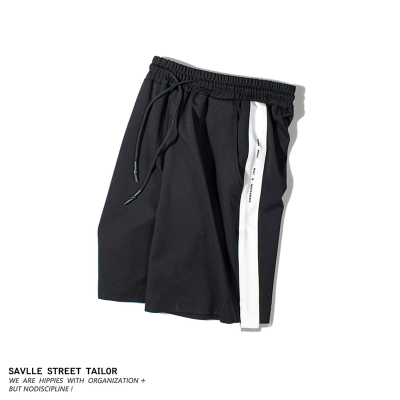 Summer Japanese tide brand shorts men's sports five-point pants casual shorts white strip loose casual pants beach pants tide