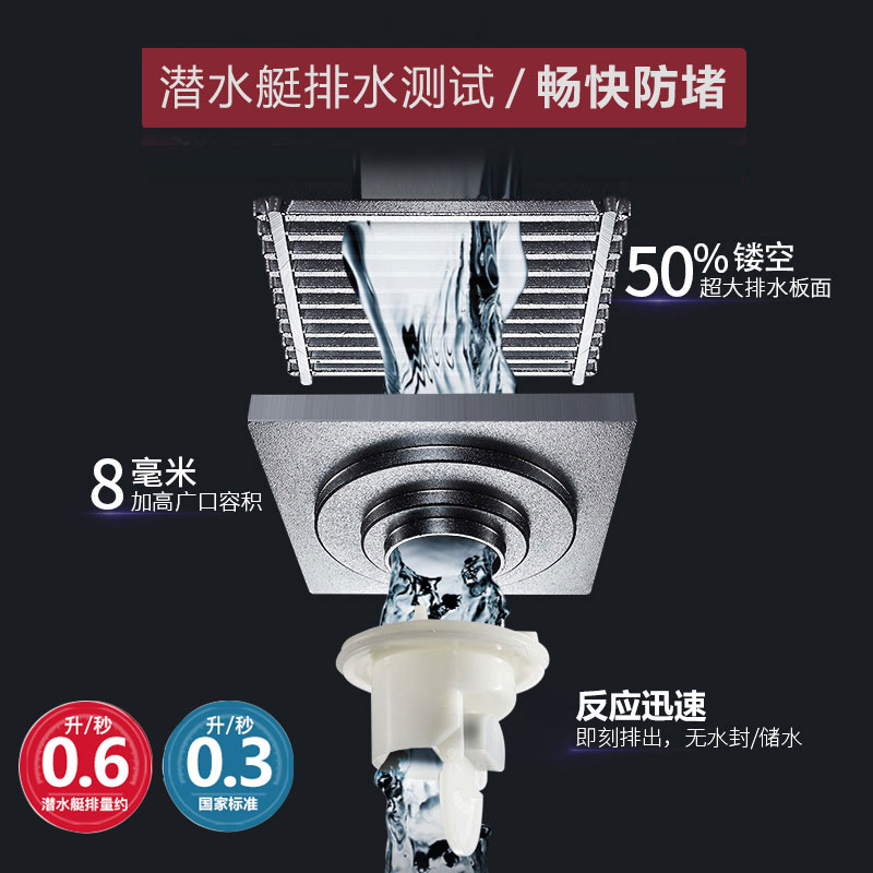Submarine ultra-thin floor drain all copper anti-odor powder room cover bathroom washing machine special displacement short core 40 floor drain core