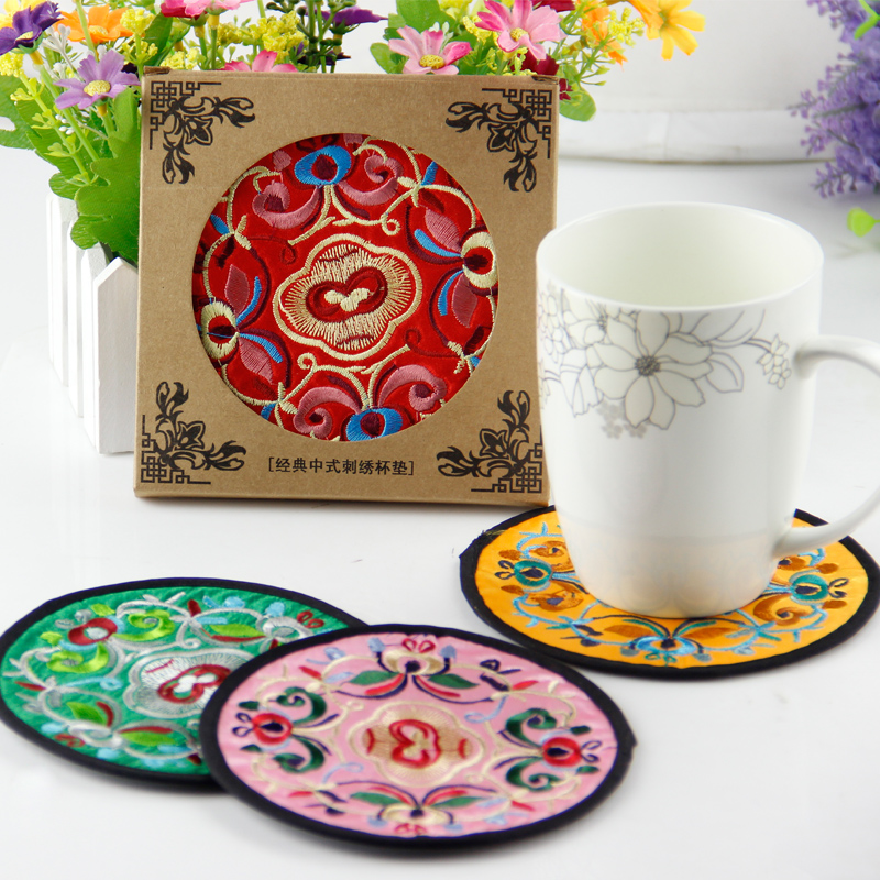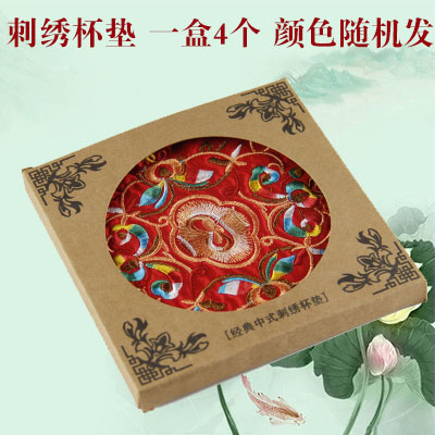 Chinese female embroidery cup cup mat 4 Chinese characteristics gift package to send foreign cup cup gift set out abroad