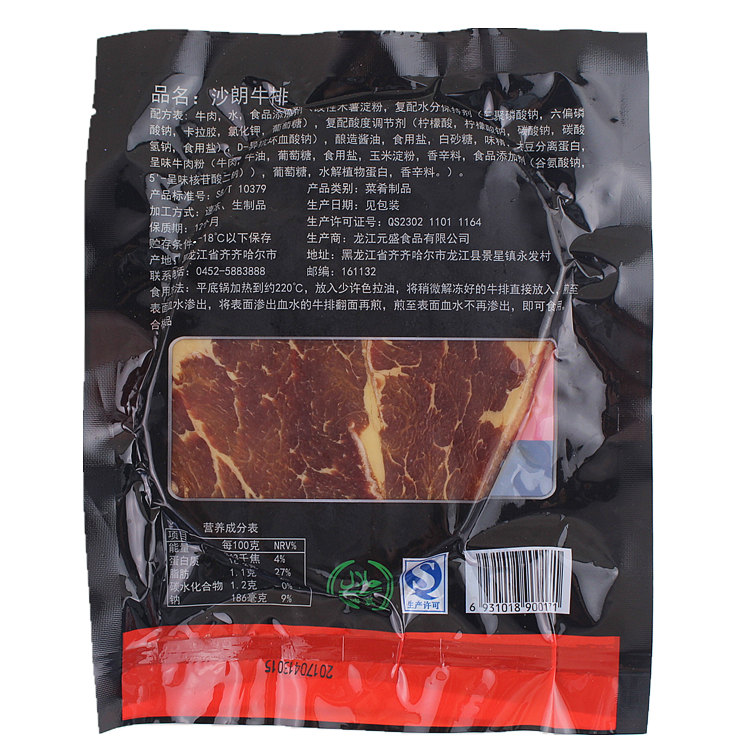 Yuansheng Sirloin Steak 50pcs*180g Seasoned Western Food Steak Beef Family Children Condiment Package
