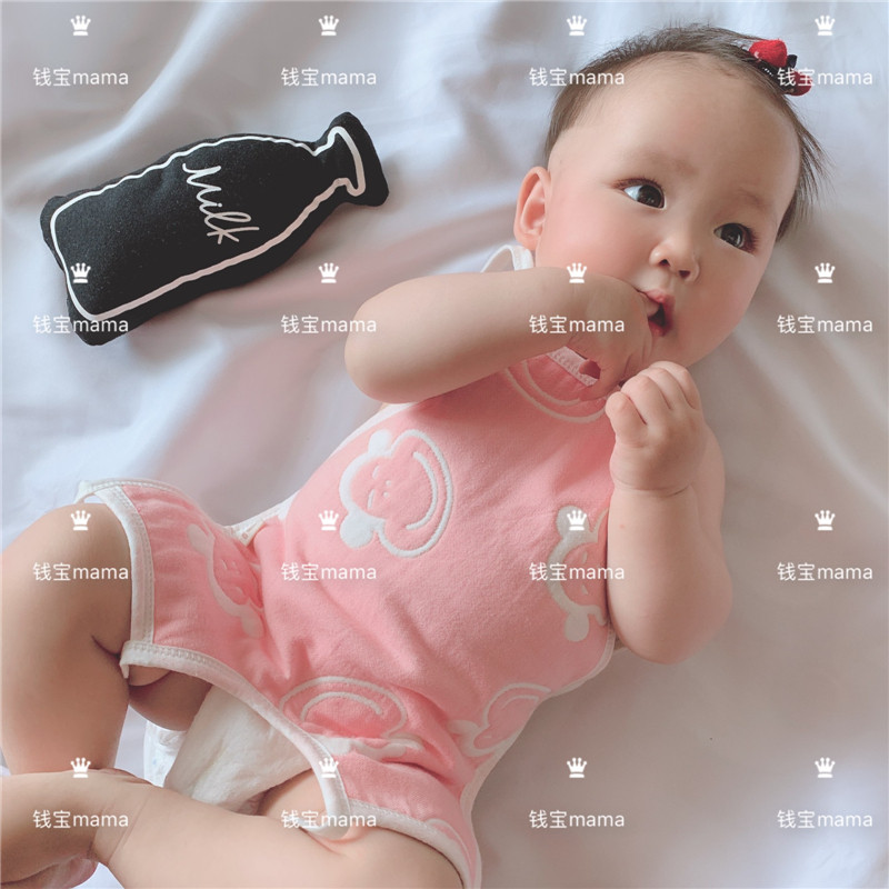 MMKIDS Magic Little Meow Pure Cotton Cotton Cloth Legs Belly pocket newborn baby baby protective belted clothes 0-1-2 year old Summer