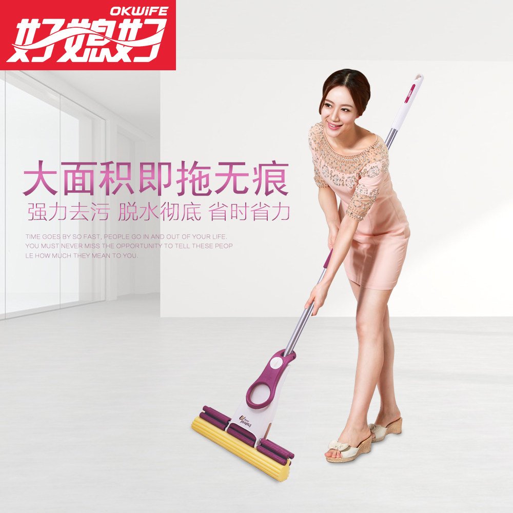 Good daughter-in-law U series 38CM large rubber cotton mop roller type absorbent sponge mop household squeeze water floor mop