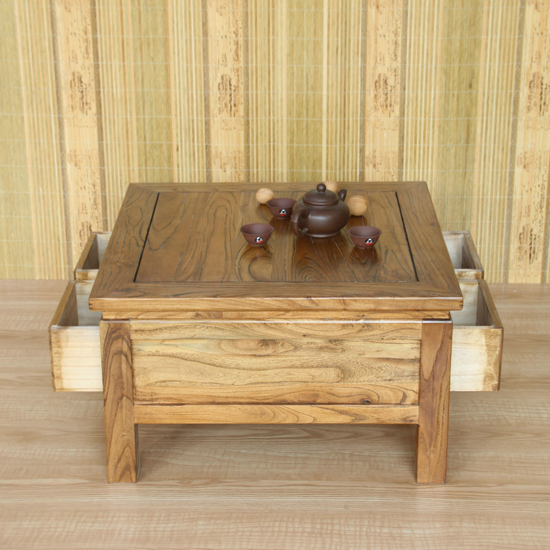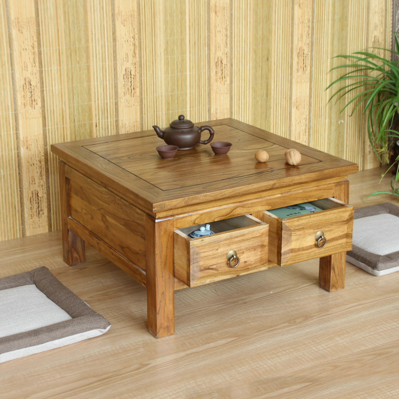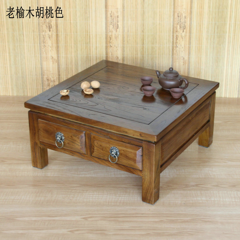 Japanese-style tatami coffee table solid wood bay window table old elm kang table kang few tea table low table simple small table