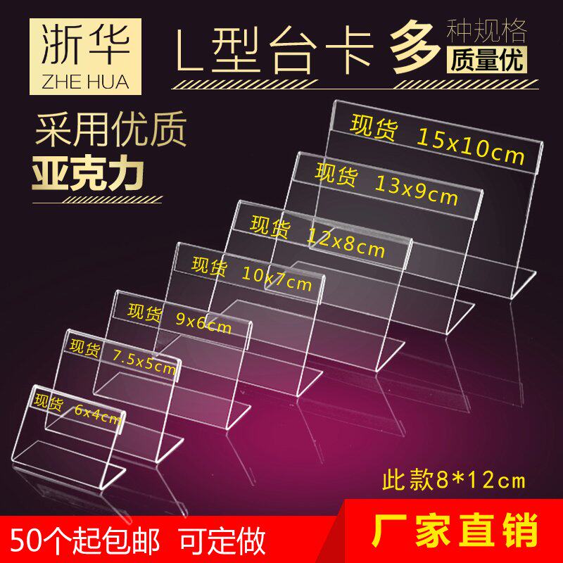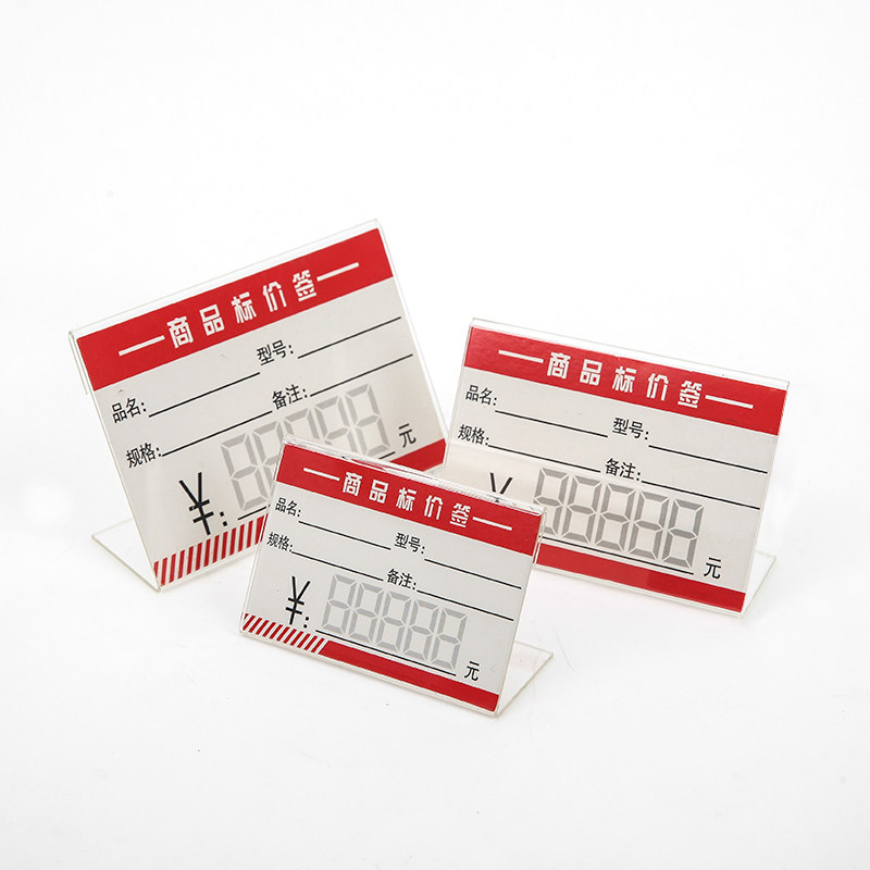 Acrylic L Type Transparent Desk Card Mark Price Sign Goods Signage Table Sign Desk Card Supermarket Price Tag of the Supermarket Price Tag