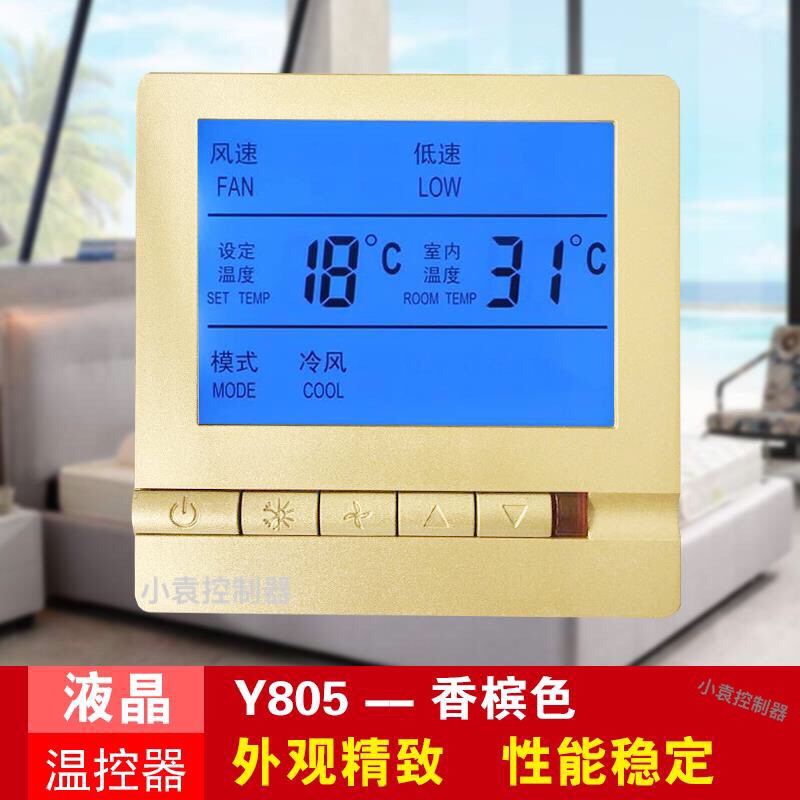 Central air conditioner LCD thermostat ventilator coil controller air conditioner switch water machine panel golden champagne color