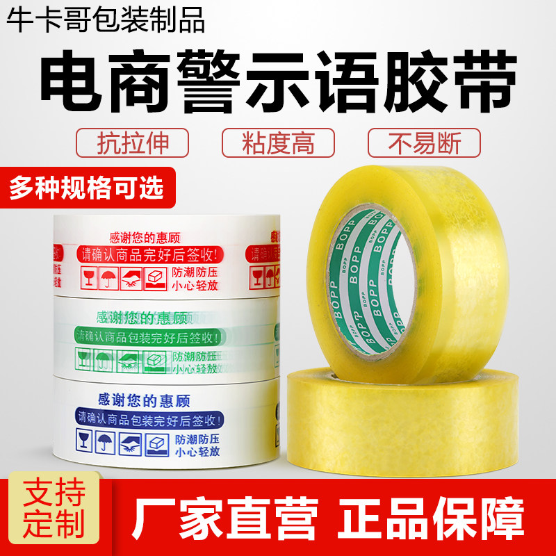 Transparent adhesive tape delivery closure seal case large roll package warning tone wide adhesive tape Custom logo print