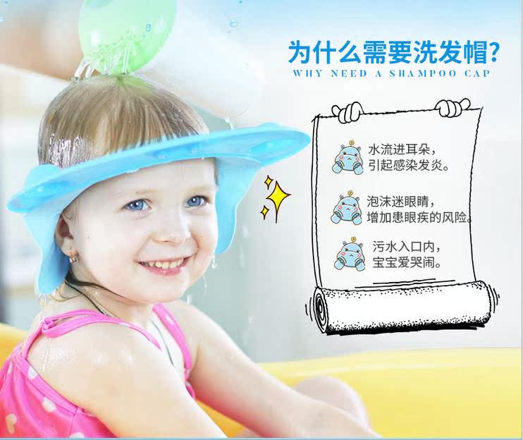 Children's Shower Cap Baby Shower Cap Infant Shampoo Cap Kids Shampoo Cap Hippo Card Buckle Shower Cap
