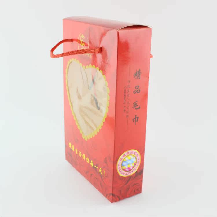 Packing box single gift box with a towel with hand rope front opening window 100 in bundles to sell new products