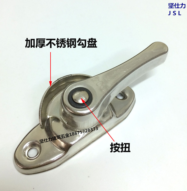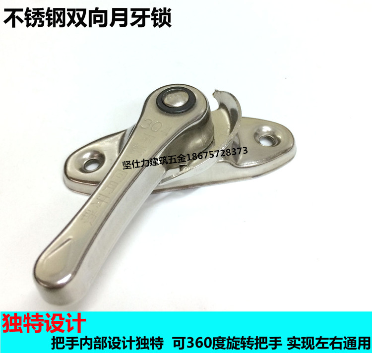 Stainless steel universal crescent lock 90 plastic steel window crescent lock aluminum alloy window lock window lock crescent handle hole distance 55MM