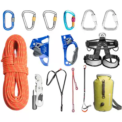 Outdoor rock climbing mountaineering downhill rope Rock climbing rope Rock climbing equipment set High-altitude ascent and descent device hole exploration set