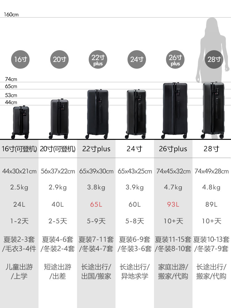 20-inch chassis (cumulative sales 40W) (Rover length upgrade) 22 inch plus box (suitable for 5-10 days long distance travel capacity equivalent to 27 inches) 24 inches