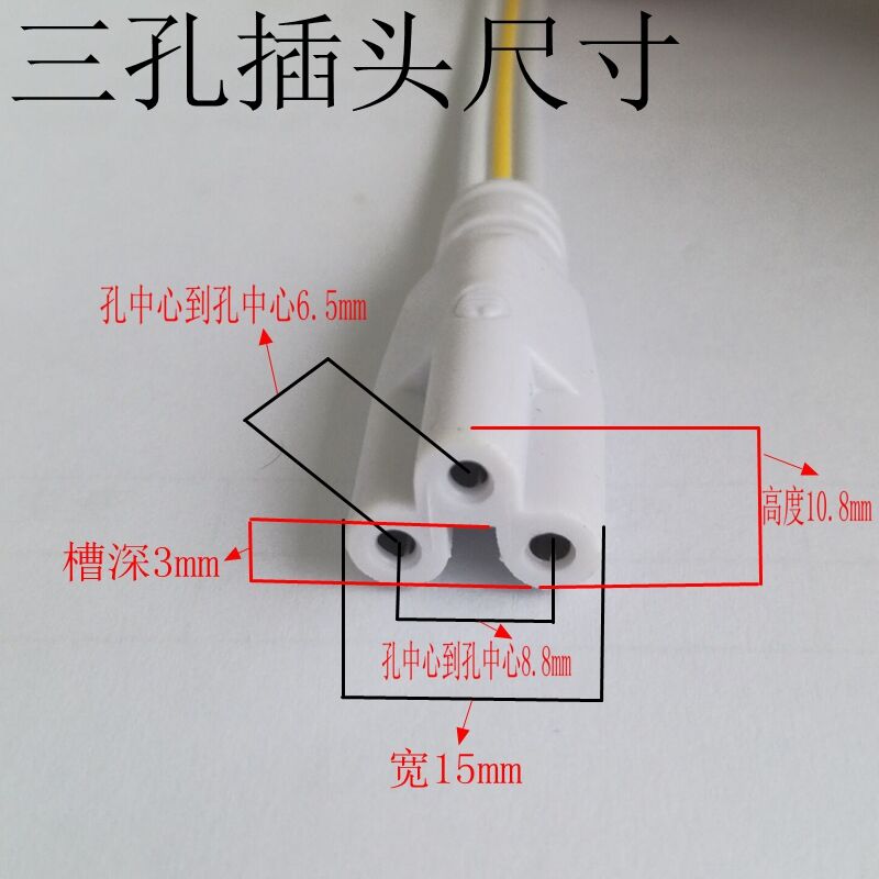 T5T8 LED tube connected line integrated daylight corner three - line double plug connecting line three - hole double head