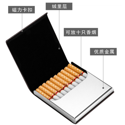 Original dress Danish imported men's flip cigarette box genuine leather stainless steel Tobacco box 10 only ultra thin upscale tobacco