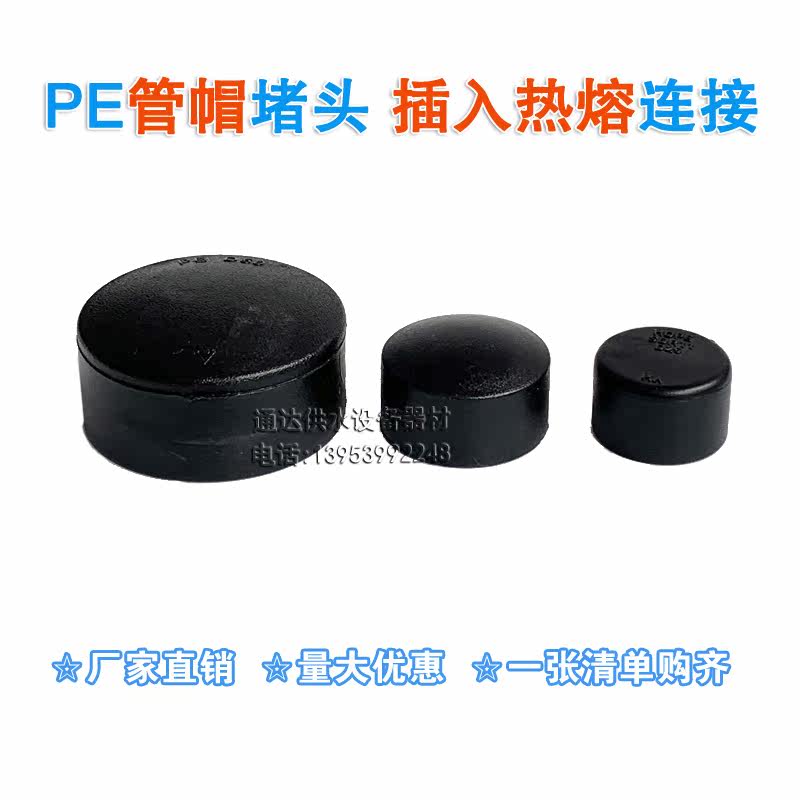 PE pipe cap hot melt pipe plug 20 tap water pipe fittings plug 50 63 black plastic head 6 minutes 1 inch pipe fittings
