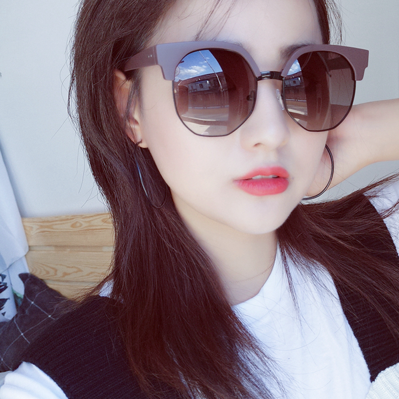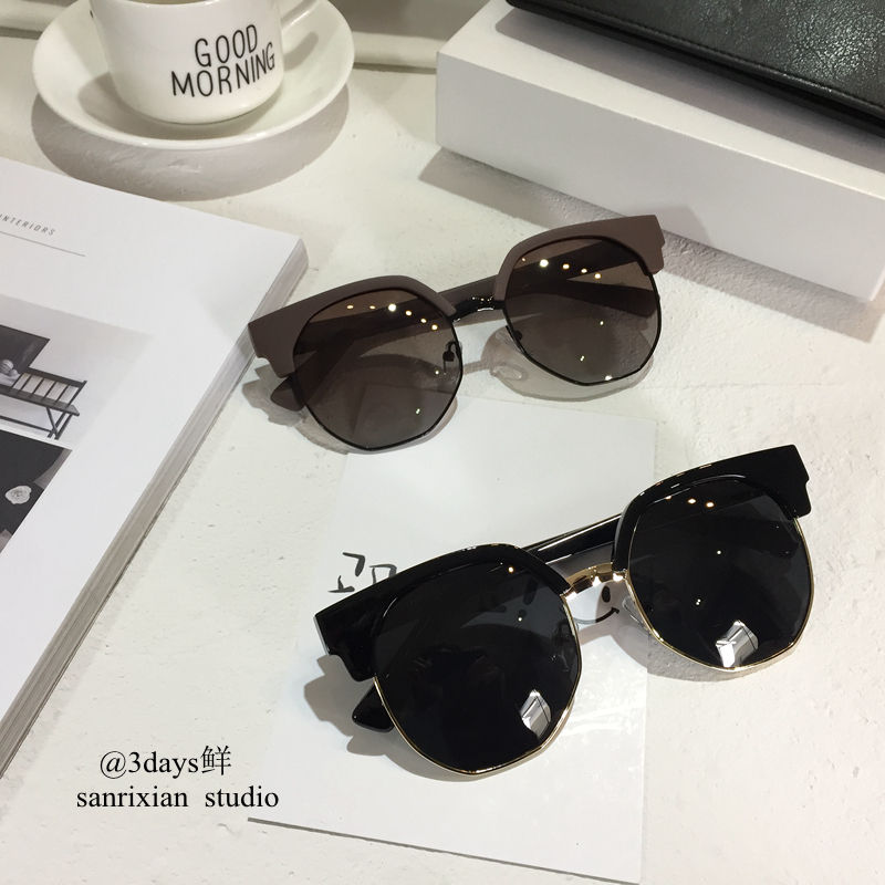 vcruan 13c tea colour sunglasses Irregular Round Half-Frame Sunglasses Polarized Sunglasses Big Frame-Taobao