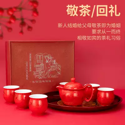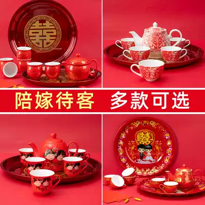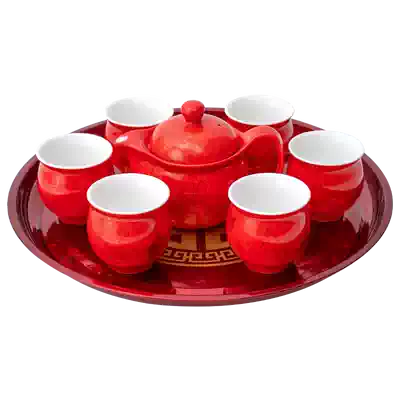 Rich golden flower 1 Pot 6 cup porcelain plate colorful dragon and phoenix 1 Pot 6 cup porcelain plate classic paper-cut 1 Pot 6 cup porcelain plate classic paper-cut 1 Pot 6 cup porcelain plate double happiness 1 Pot 6 double-layer tea cup