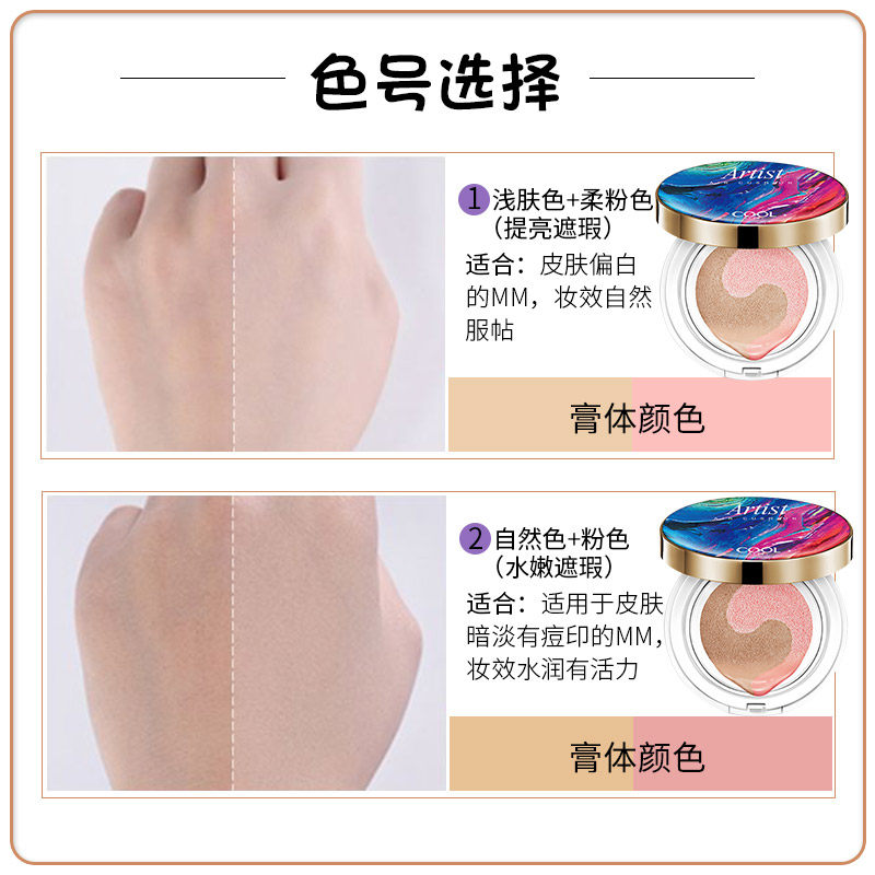 Playful Beauty Bicolor Air Cushion BB Cream Nude Makeup Nourishing Moisturizing Moisturizing Insulation Cream Waterproof CC Frost Powder Bottom Liquid Woman