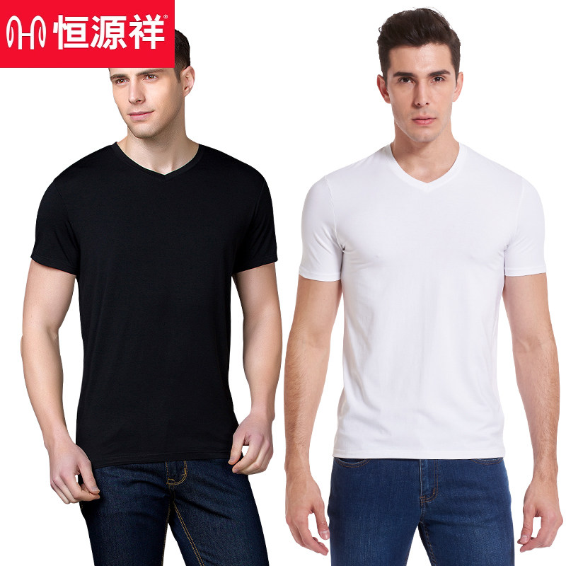 Hengyuanxiang T-shirt men's modal short-sleeved T-shirt solid color V-neck slim summer dress half-sleeved men's T-shirt bottoming shirt