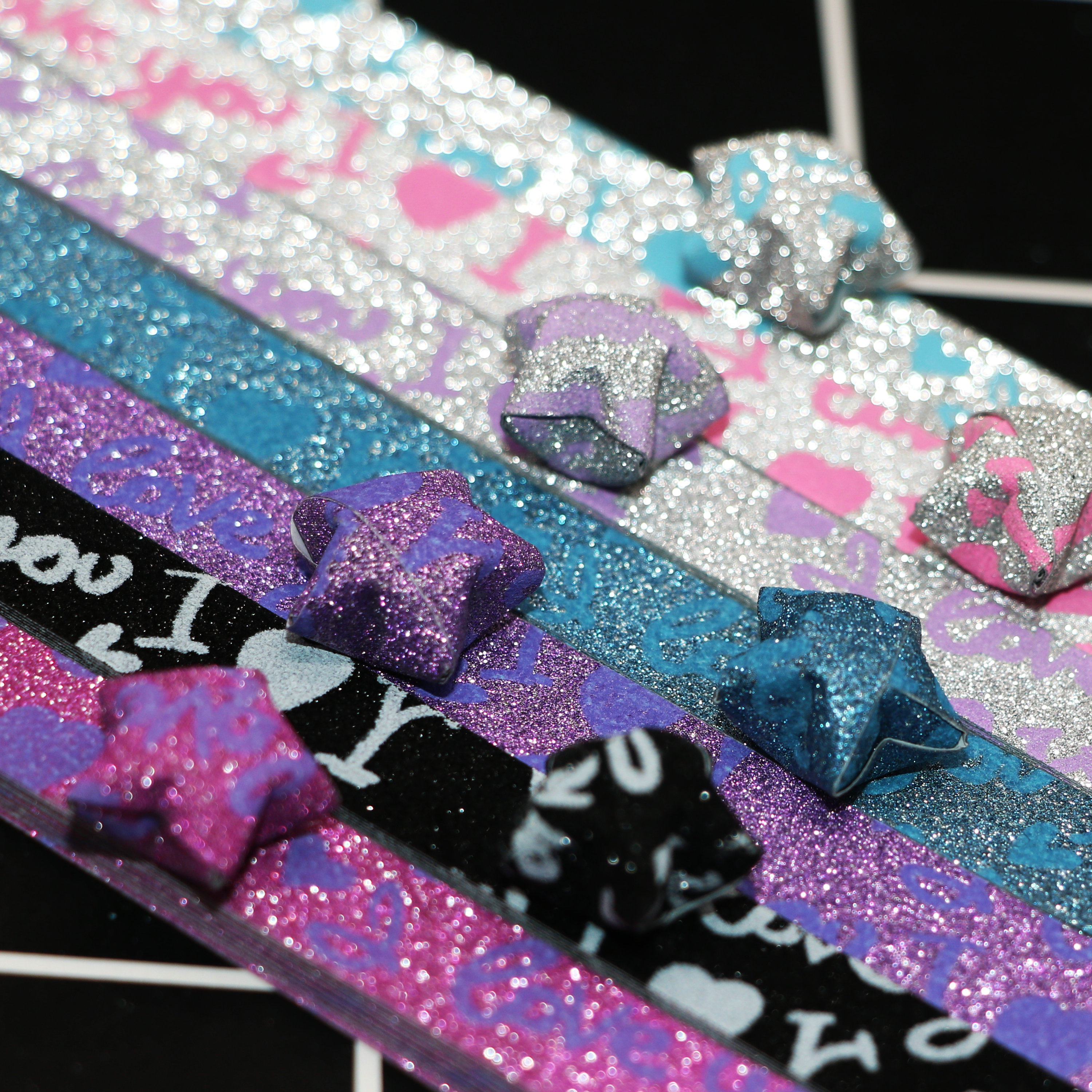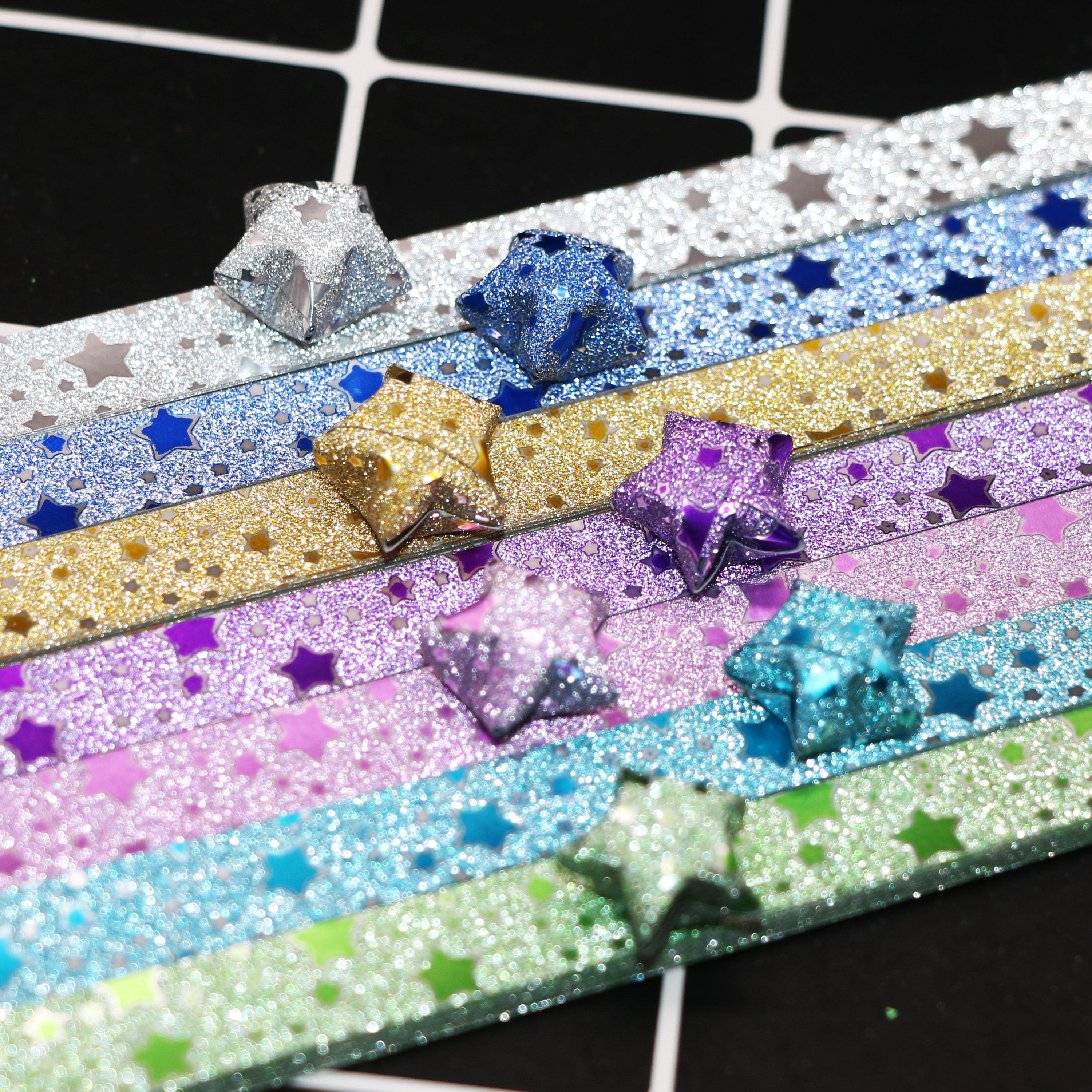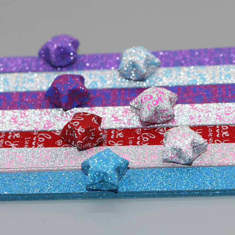 Flash Drilling Star Folding Paper Bright Pink Star Note Lucky Stars Origami Paper Tube Handmade Paper