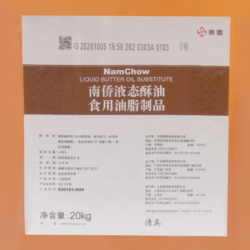 Nanqiao Nanqiao Liquid Crisp Nanqiao Shortening Short Skin Oil Suitable for Qifeng Cake 20kg Bucket