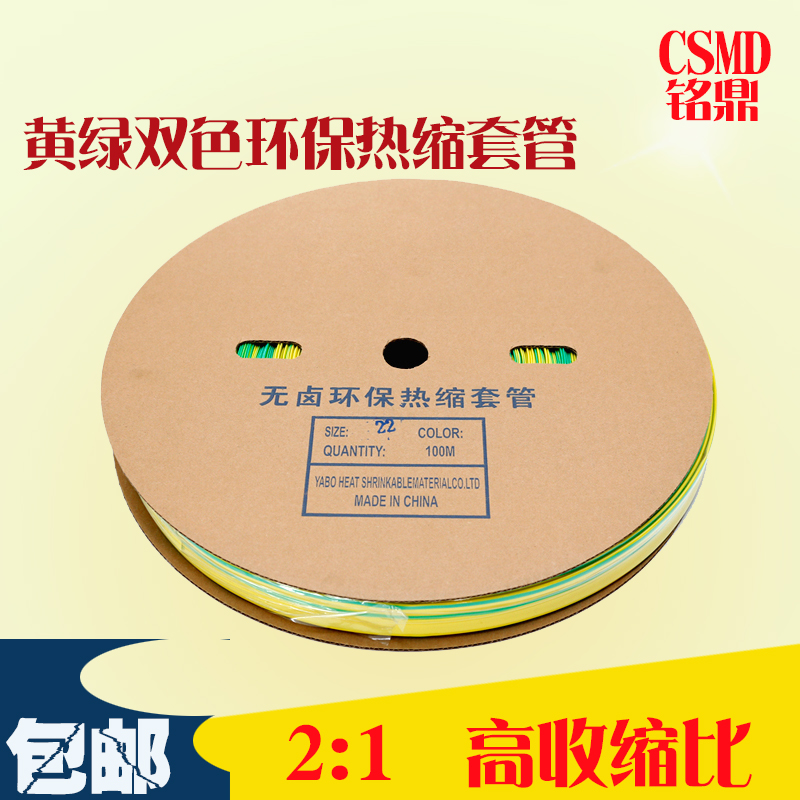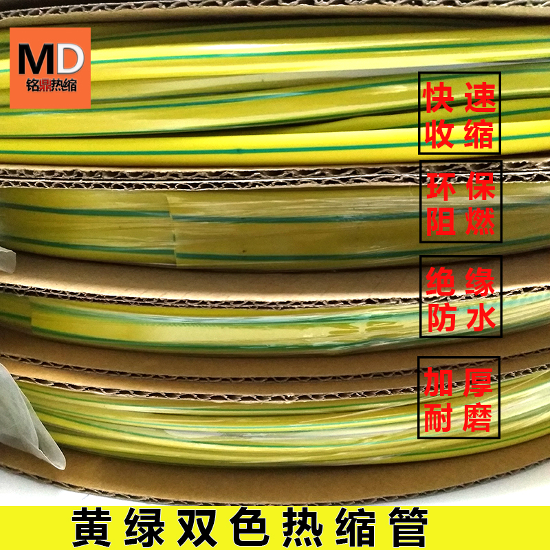 Heat shrinkable tube yellow-green double color diameter 3mm-50mm Environmental protection flame retardant thickened grounding wire harness Pipe identification whole volume