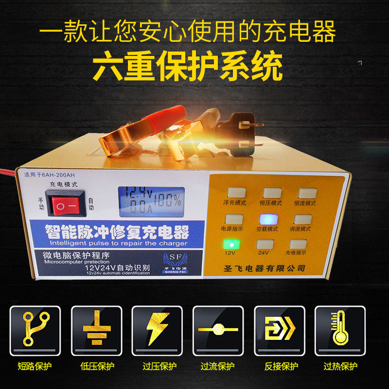 Automatic intelligent liquid crystal display car battery charger 12V24V motorcycle battery charger
