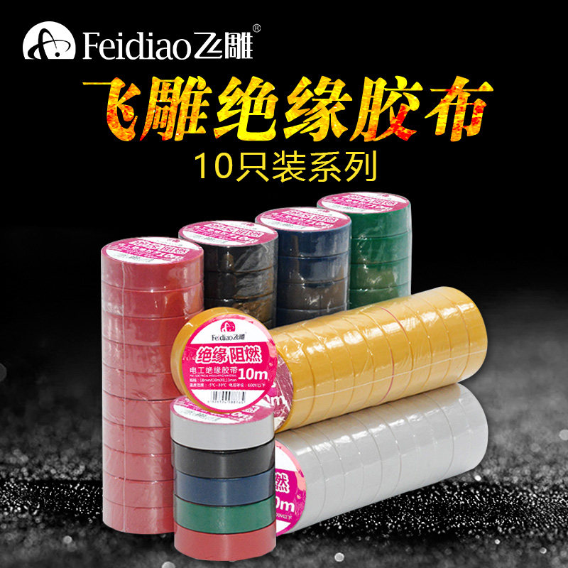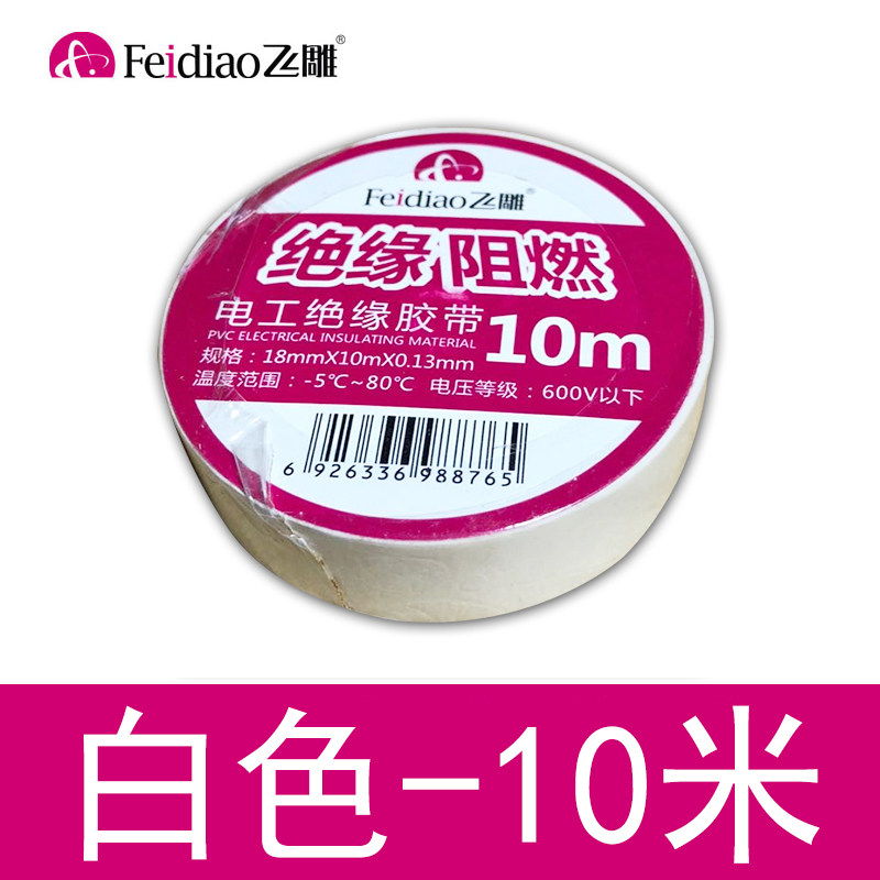 Flying engraving electric rubberized fabric 10 m insulation electrician adhesive tape waterproof and high temperature resistant with flame retardant white electric cloth