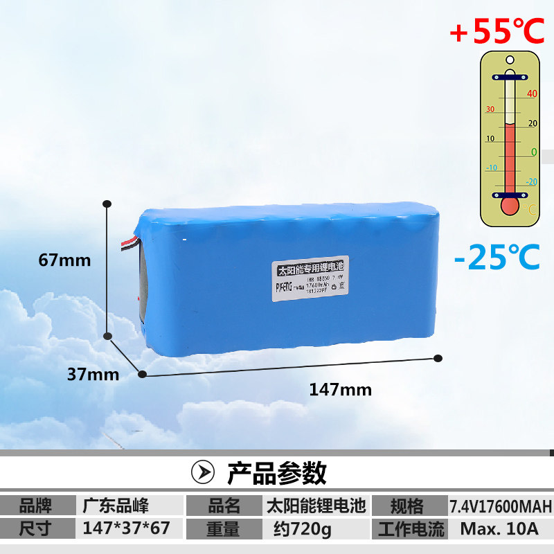 Solar Lithium Battery Street Lamp Battery 7 4V17600mAh18650 Bat Lamp Swan Lamp Integration