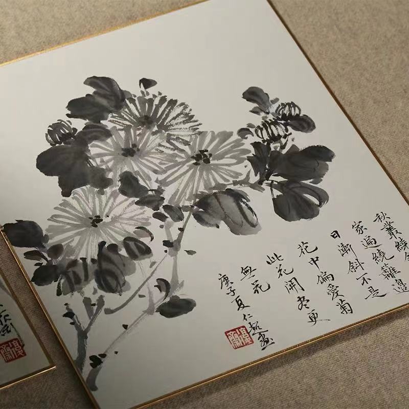 Imported Japanese painting fairy paper Xuanka white gold and silver gold latent paper Outer inner circular sector Hard cardboard Chinese painting calligraphy Xuan paper