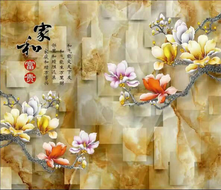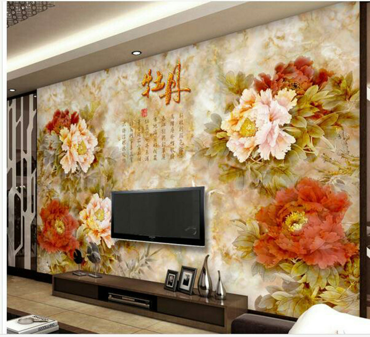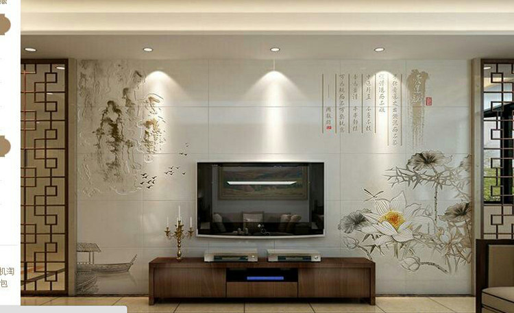 Tile Background Wall Genway Living Room TV Sofa Background Color Sculptures Crystal Glazed and Peony Jade Sculptures