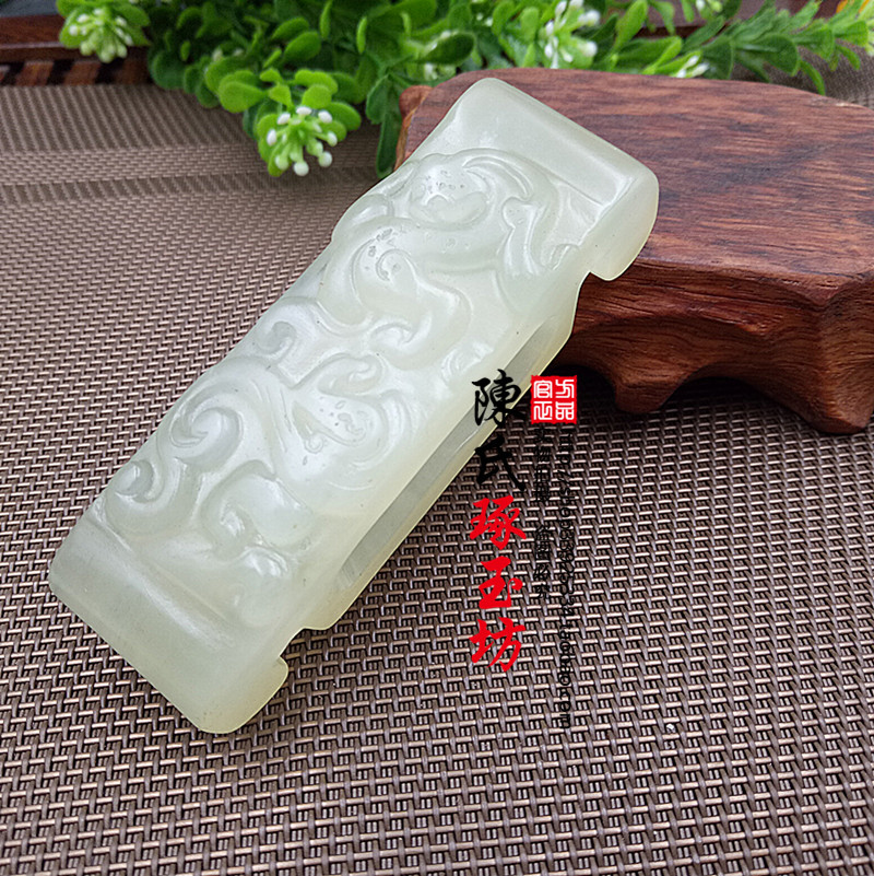 And Tian Qing jade glass dragon leather belt buckle waist down with pendant male imitation ancient dragon waist pew belt hanging decoration ancient Yupei hanging decoration