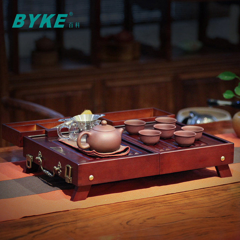 Encyclopedia purple sand travel tea set portable outdoor tourist package in the field car folded solid wood drainage tea plate