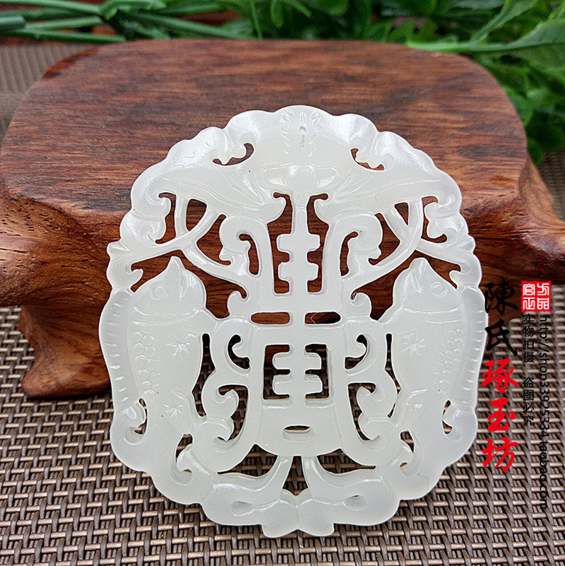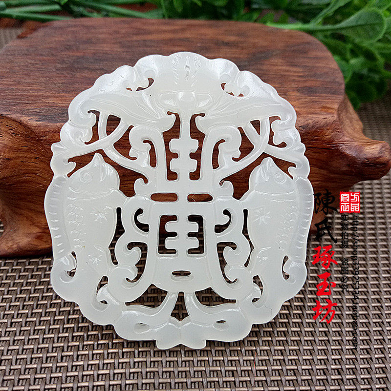 Outer Mongolia material Hanfu accessories double-sided hollow Pisces blessing pendant pendant pendant longevity word jade jade pendant pendant sweater chain